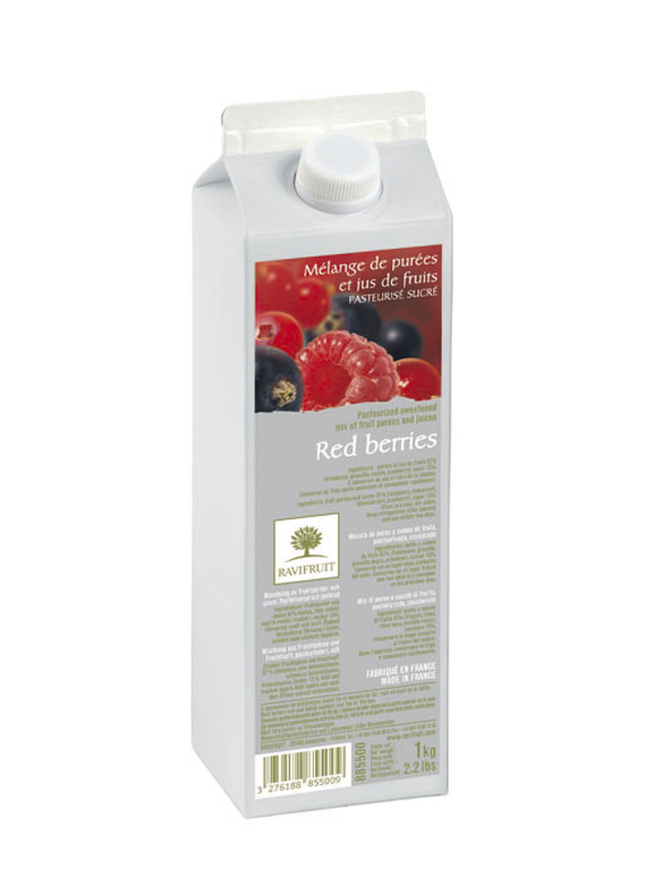 Puré de frutos rojos con un contenido del 90% de fruta. El cóctel antioxidante por excelencia. De las mejores cosechas que ofrece la naturaleza. Para la elaboración de Cócteles –con o sin alcohol-, Smoothies, Sorbetes, Cremas, Batidos, Helados, Granizados y Gelificados. Disponemos de infinidad de recetas para tus preparados, te las proporcionamos. Sabor y aroma tan intenso como auténtico. Su textura es de tal perfección que, no sólo es utilizado detrás de la barra sino también en la cocina de los profesionales más exigentes para la creación de postres gourmet y purés fríos.